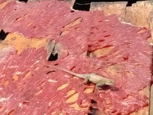 Le plus grave, nous avons visité tout le circuit de production de la peau d’animaux appelée “kplô” et très appréciée des Abidjanais. Des camions entiers de peaux d’animaux sèches depuis des années ou des mois arrivent par camions d’autres pays. Ces vieilles peaux sont récupérées et brûlées à l’aide de pneus usagés (vous avez bien lu pneus usagés).