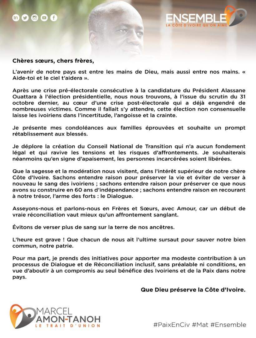 Accueil/Actualité/Côte d’Ivoire – Opposition : Amon Tanoh Marcel désapprouve le « Conseil National de Transition » ActualitéActualité en imageFlash-infoPolitiqueSociété Côte d’Ivoire – Opposition : Amon Tanoh Marcel désapprouve le « Conseil National de Transition » 09/11/2020 Moins d'une minute Facebook Twitter Linkedin Pinterest WhatsApp Telegram Partager par email Imprimer Commentaires (Facebook) 09/11/2020 Moins d'une minute Facebook Twitter Linkedin Pinterest WhatsApp Telegram Partager par email Imprimer