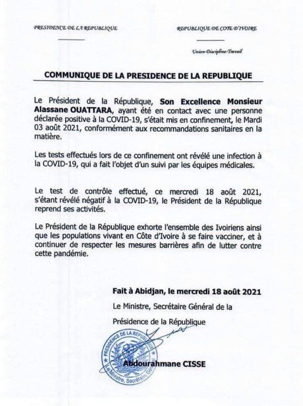 Accueil/Actualité/Covid 19 : Alassane OUATTARA reprend ses activités ActualitéFlash-infoPolitiqueSanté Covid 19 : Alassane OUATTARA reprend ses activités 19/08/2021 Moins d'une minute Facebook Twitter Linkedin Pinterest WhatsApp Telegram Partager par email Imprimer Commentaires (Facebook) 19/08/2021 Moins d'une minute Facebook Twitter Linkedin Pinterest WhatsApp Telegram Partager par email Imprimer