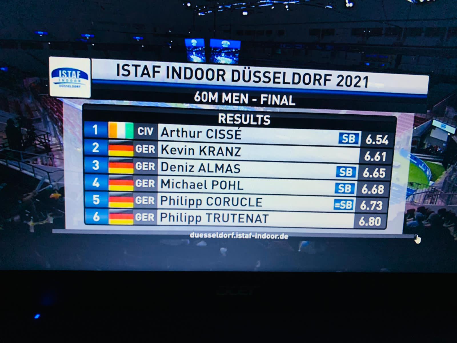 De retour sur les pistes ce dimanche à la faveur de la Germany Indoor Athletics ( 60 m ) qu’abritait Düsseldorf ,Arthur Cissé Gué le grand espoir ivoirien du sprint ivoirien n’a guère fait dans la dentelle en s’offrant sa première victoire de la saison.