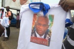 Des gadgets à l’effigie du FPI ou du défunt se vendaient aux militants et autres sympathisants du parti venu rendre un hommage à M. Sangaré.