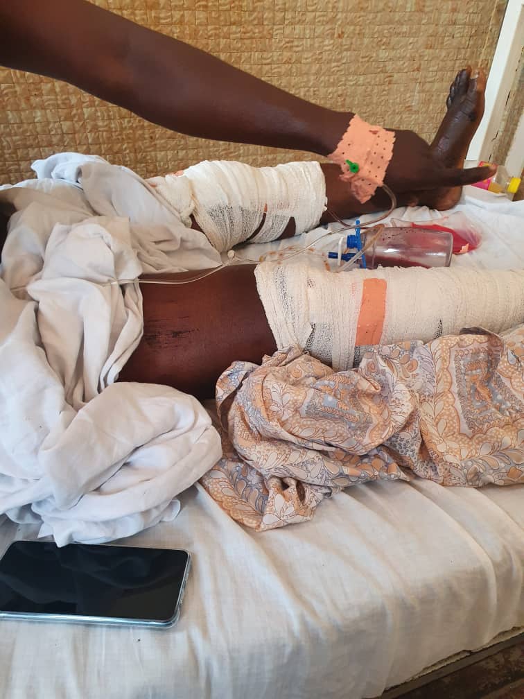 Me Ouffoué Nicolas a eu ses deux membres inférieurs fracturés suite à une collision avec une voiture. Il se trouve actuellement en traumatologie. Sa fille quant à , a eu un choc au niveau du bassin. Elle a été admise en cardiologie. Face à la gravité de la situation, le président de la FIDJA a d’abord fait un important don financier pour les frais d’hospitalisation.