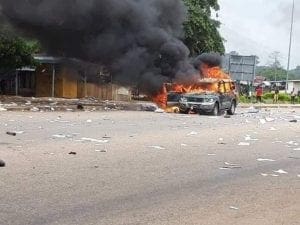 Les populations de Yamoussoukro, capitale politique de la Côte d’Ivoire ont connu une matinée assez mouvementée ce vendredi 30 octobre 2020, veille de l’élection présidentielle. Des échauffourées ont éclaté entre les forces de sécurité et des manifestants qui ont érigé des barricades. Sur certaines vidéos, l’on pouvait voir des jeunes armés de gourdins, de machettes dans les rues. Des biens ont été incendiés.