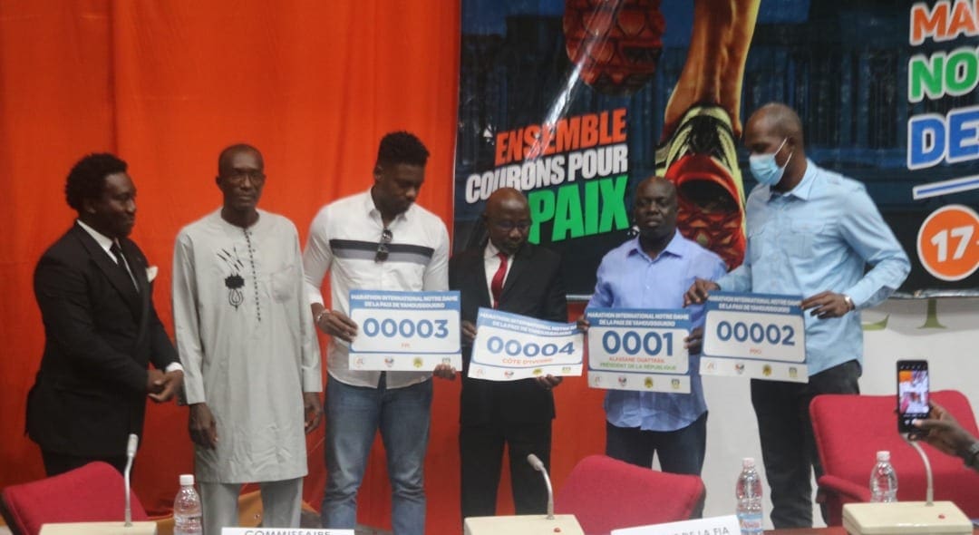 Plusieurs grands noms kényans , camerounais , ghanéens et marocains du marathon sont attendus à ce marathon international notre dame de la paix de Yamoussoukro. » Techniquement tout est prêt » pour lancer les festivités ,selon Marcel Avy le Commissaire Général et Sié Poda ,le Directeur Technique de ce marathon qui s’est fait fort de présenter les parcours des quatre épreuves.Il s’agit du 5 km ,les 10 km ,le 21 km et le ( 2X 21 km) ou ( 42.195 km).À cette cérémonie officielle de lancement ,quatre dossards ont été sollennement remis aux autorités présentes.Le vainqueur du 42.195 km, recevra la somme de 3 millions de francs CFA.12.000 athètes ,200 000 spectateurs sur le parcours et 20 000 visiteurs pour le village du marathon « Foundy kro » sont attendus les 17 ,18 et 19 juin prochains à Yamoussoukro.