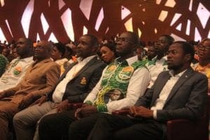 Les adhérents au mouvement, venus de la diaspora et de divers horizons du pays, pouvaient être comptés par milliers. La sale ne pouvant contenir ce monde, certains ont été installés sur l’esplanade de l’hôtel, la plupart vêtus du pagne du RACI avec l’effigie de M. Guillaume Soro.