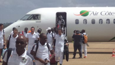 Football/Eliminatoires CAN 2019: arrivée des Eléphants à Bouaké pour le match contre le Sily national de la Guinée