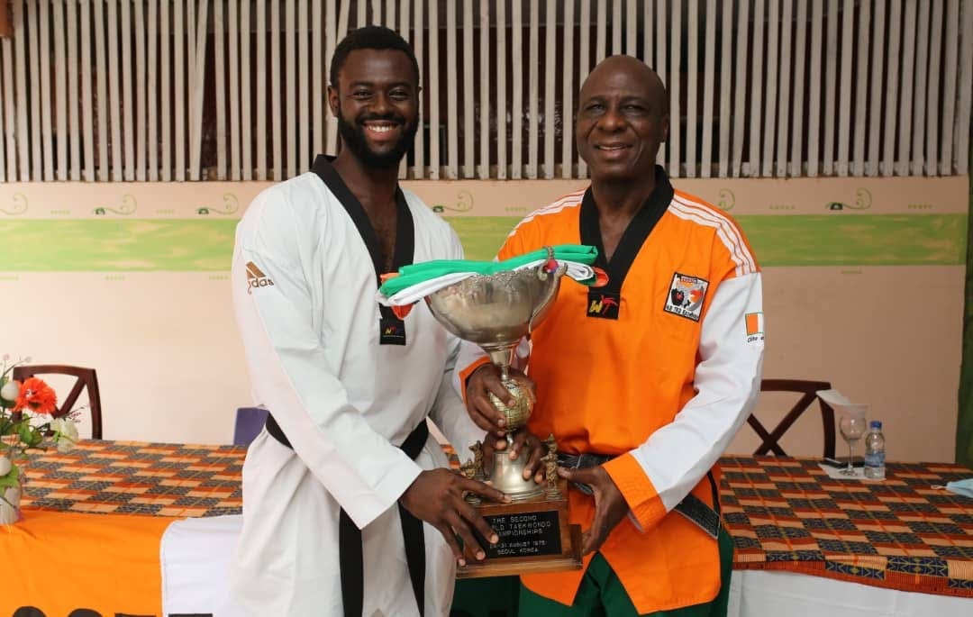 Une étape importante dans la conquête de nouvelles breloques à Tokyo que le patron du Taekwondo ivoirien a mis à profit pour galvaniser comme il sait le faire ses troupes.Cela ,en leur présentant « le 1er trophée du Taekwondo ivoirien (3ème Mondial Seoul 1975)et en leur remettant solennellement le Drapeau National pour rappeler l’ importance de leur mission pour l’honneur de la Patrie Ivoirienne ».